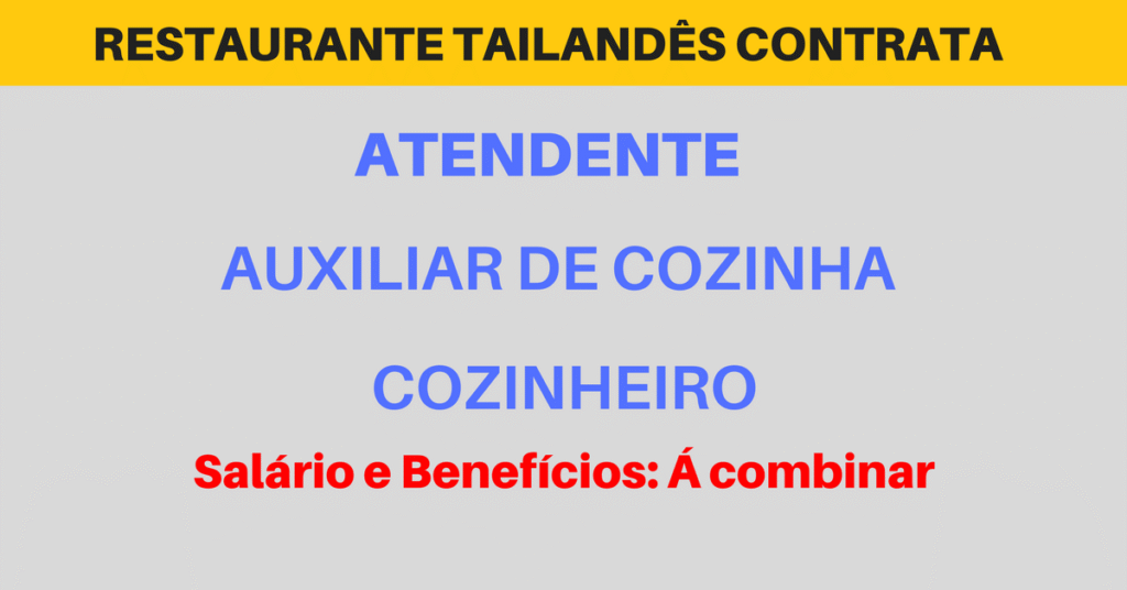 Khea Thai – Restaurante Tailandês contrata: Cozinheiro/ auxiliar de cozinha /atendente Local: Curitiba – Park Shopping Barigui Salário e