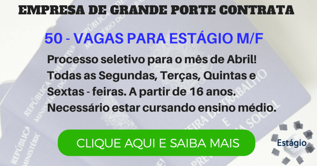 Imagem: internet Estamos Contratando, Venha Fazer Parte do nosso Time 50 vagas para Estágio Descrição: Ensino médio Técnico; Maior […]