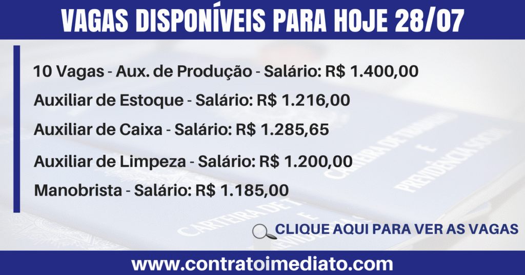 Cargo: Auxiliar de Produção Quantidade de vagas: 10 Local: CIC – Curitiba, PR Tipo de Contrato: Efetivo Descrição da