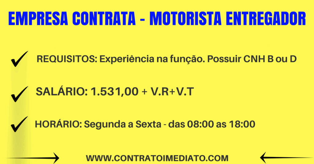 Vaga de Motorista entregador “CAT. B”. Envie seu cv