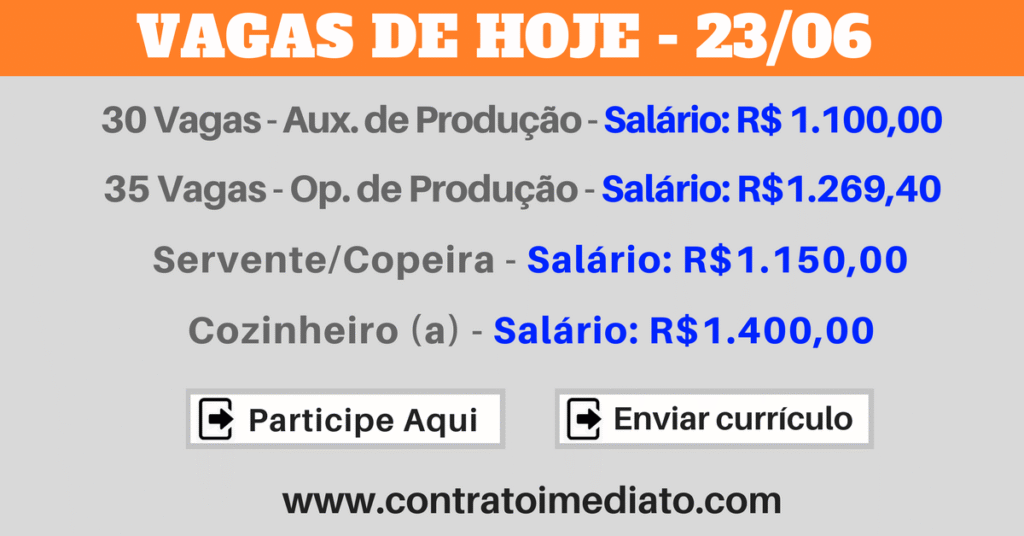 Cargo: Auxiliar de Produção Quantidade de vagas: 30 Local: Araucária – PR Sexo: Ambos os sexos Descrição: Masculino (desejável