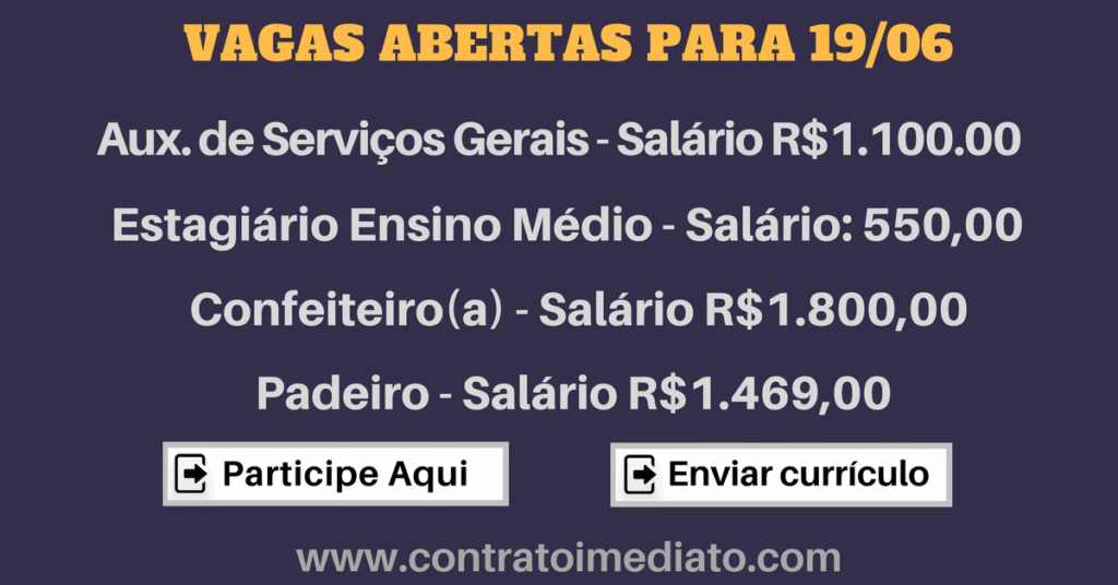 LOCAL: Colombo – Pr ESCOLARIDADE: Ensino médio completo REQUISITOS: Experiência na função. ATIVIDADES: Executar trabalhos de fabricação de pães,