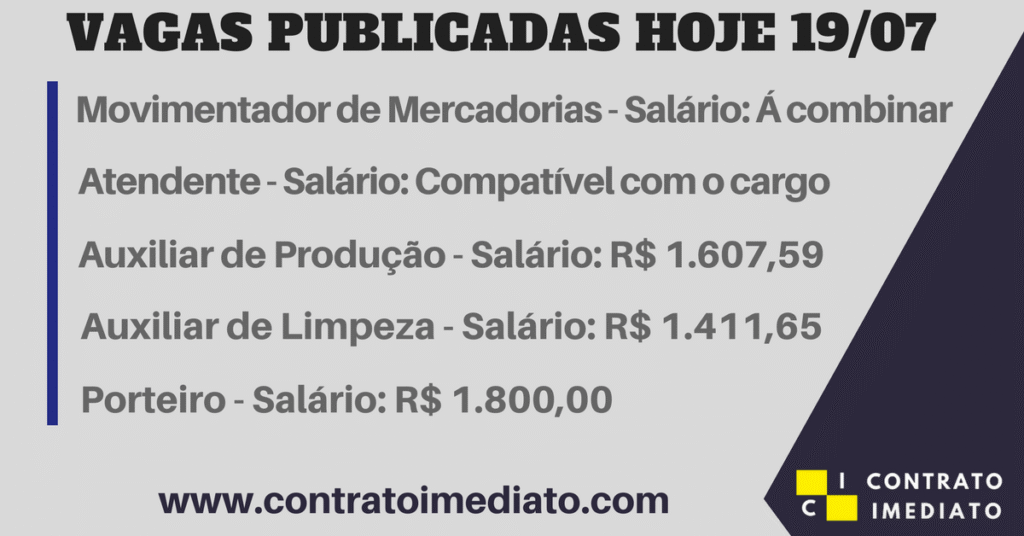 Cargo: Porteiro 12 X 36 Quantidade de vagas: 2 Escolaridade:Ensino Fundamental (1º Grau) Completo Regime de contratação: Efetivo CLT […]