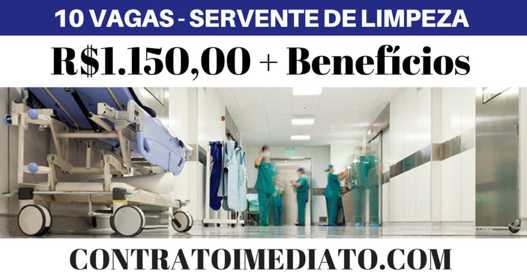 Código da vaga:12101 Cargo:Servente de Limpeza 12 X 36 Quantidade de vagas:10 Escolaridade:Ensino Fundamental (1º Grau) Incompleto Regime de