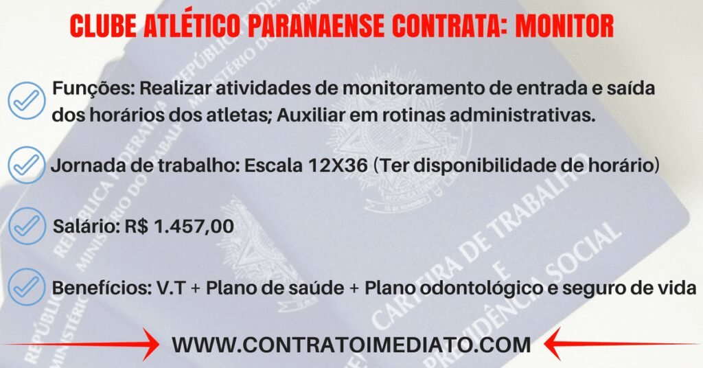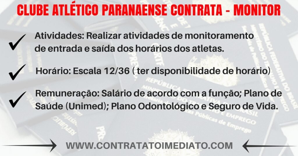 Cargo: Inspetor de Alunos ( MONITOR) Local: Centro de Treinamento do Atlético Paranaense, vaga para região do Sitio Cercado […]
