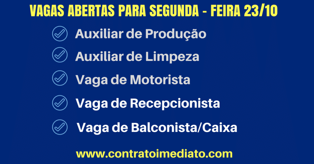 Auxiliar de Produção Quantidade de vagas: 12 Local: Campo Largo – PR Descrição: Masculino (desejável de 19 a 45
