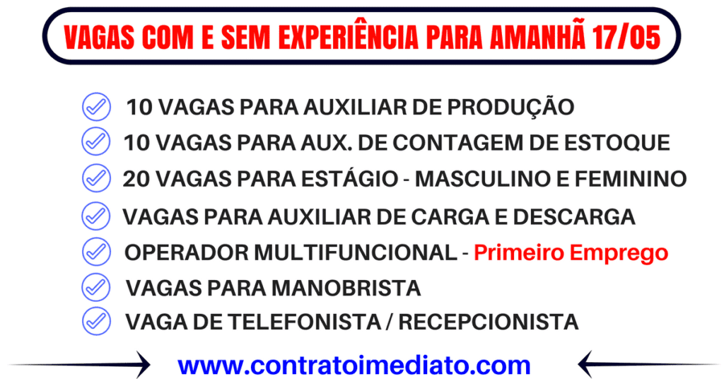 Empresa contrata com urgência Auxiliares de Produção Requisitos: Disponibilidade total de horário, experiência com injetora, ou linha de montagem,