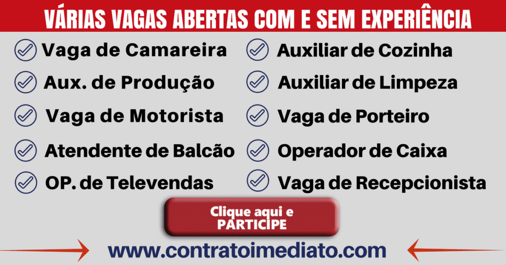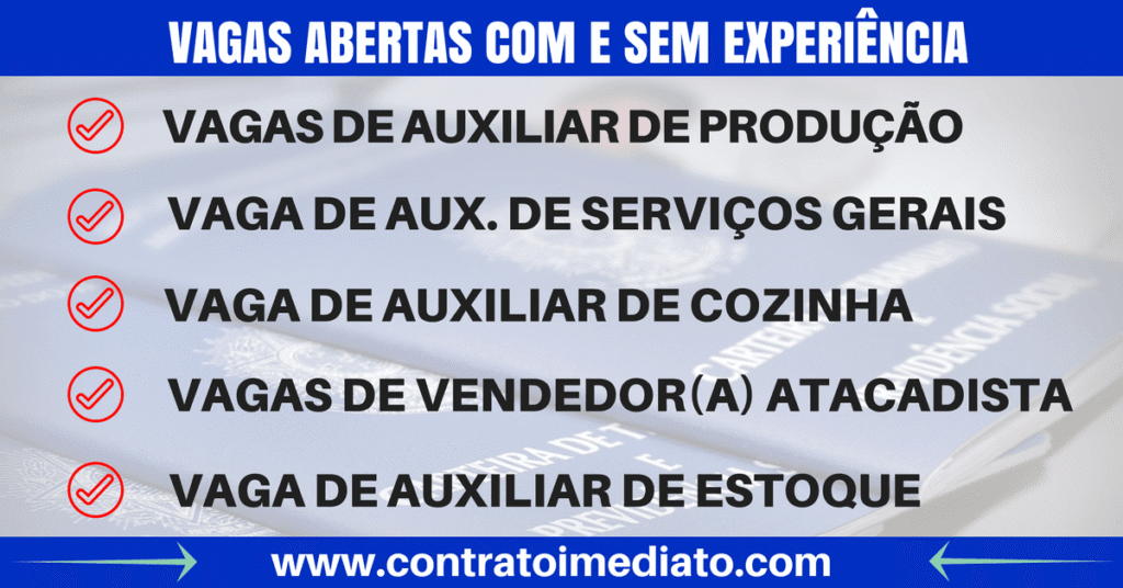 Vaga de Auxiliar de Produção Descrição: Masculino/Feminino com ou sem experiencia. Para trabalhar em uma Serigrafia. Atividades: acabamentos gráficos, […]