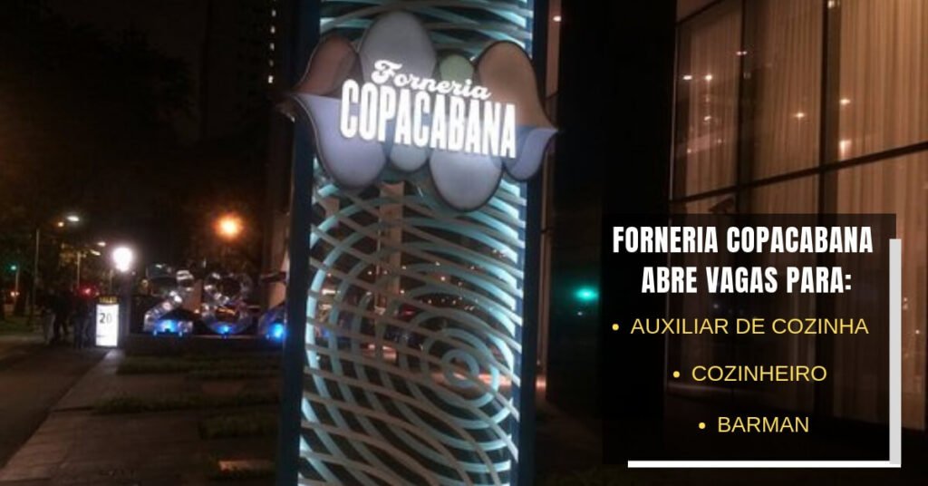 Forneria Copacabana, localizada na Região do Água Verde em Curitiba abre vagas para os seguintes cargos: – AUXILIAR DE