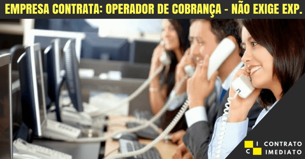 EMPRESA CONTRATA: Operador de cobrança Quantidade de vagas: 10 Turno de 06h Local de trabalho: Portão – Curitiba Salário