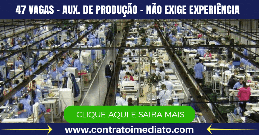 Quantidade de vagas: 08 Regime de contratação: Temporário Horário: 08:00/18:00 Seg/Sexta Salário: R$1.289,20 Benefícios: Tem que levar refeição (pago