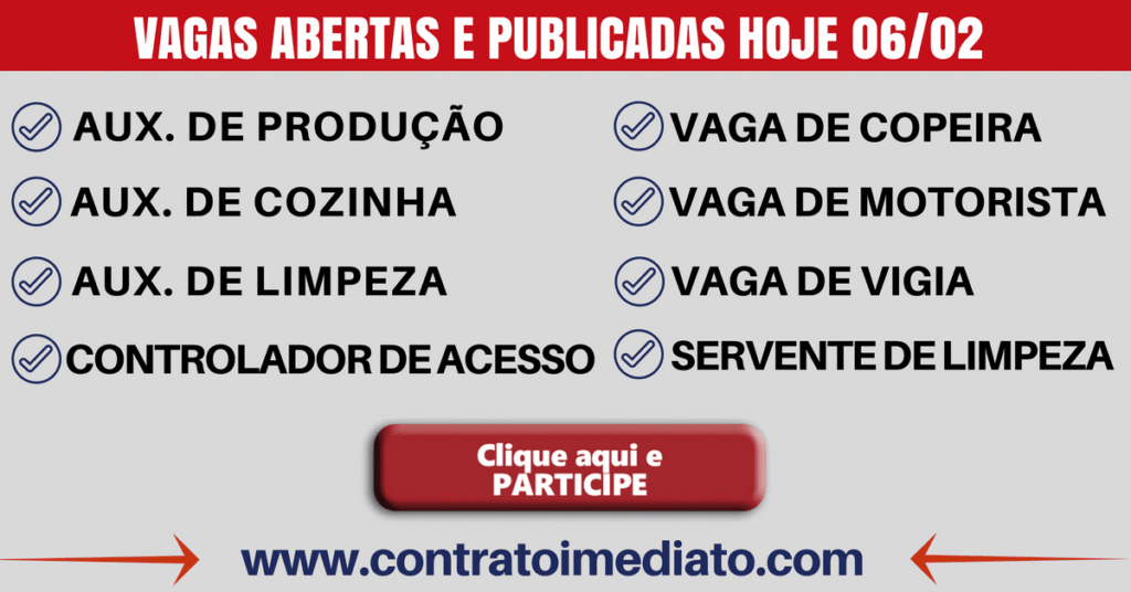 Vaga de Servente de Limpeza 44 H Descrição: Necessário experiência com higienização na função. Local de trabalho: Hauer – […]