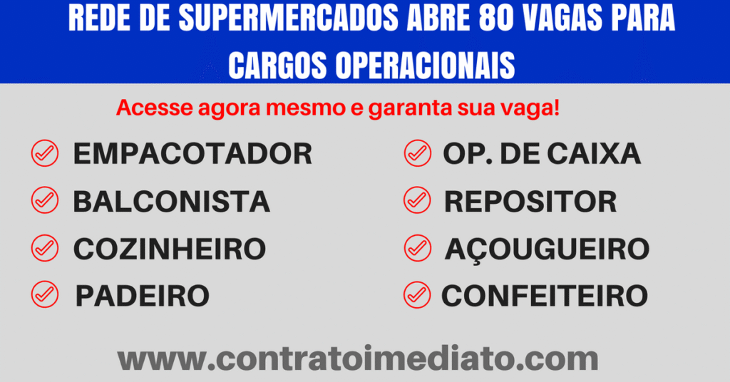 Supermercado Condor abre 35 vagas para contratação imediata, para atuarem como operadores de caixa. Para concorrer às vagas, é