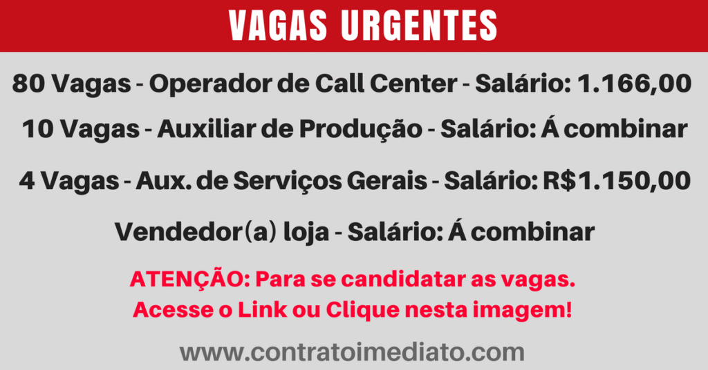 Cargo: Operador de Call Center Descrição da vaga: 80 vagas para trabalhar com vendas em Call Center, para empresa