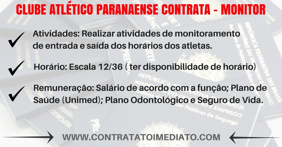 Interessados enviar currículo para recrutamento@atleticopr.com.br com nome da vaga no assunto.