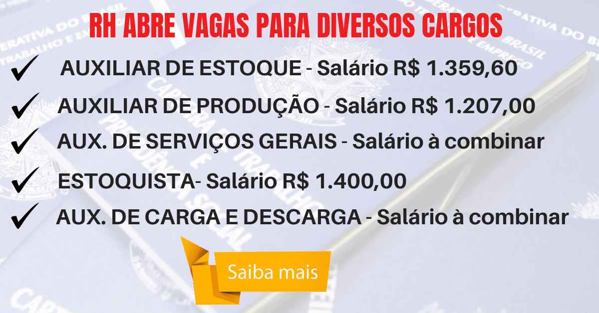 ESTOQUISTA – Barreirinha – Com experiência. Irá cuidar do estoque da produção, embalagem, armazenagem, separação. Salário R$ 1.400,00 + VT + VA. De segunda a sexta das 08h00 às 18h00. Residir próximo ao Barreirinha.