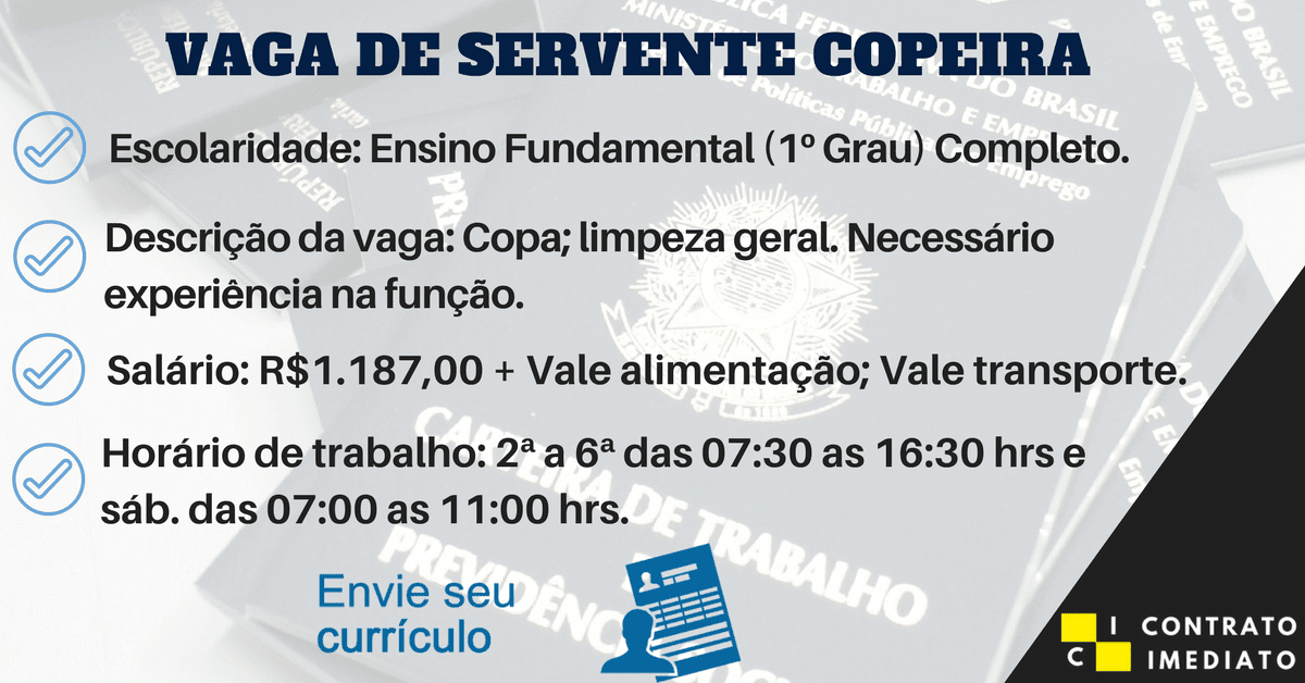 Atividades: Copa; limpeza geral. Necessário experiência na função.