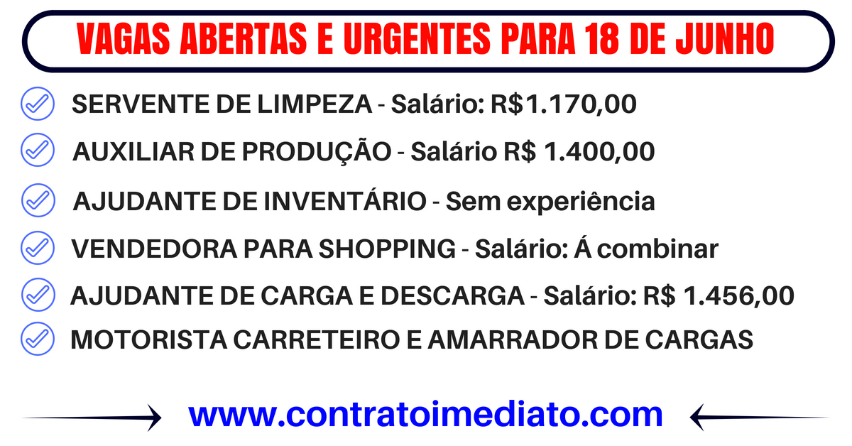 Salário: R$ 1.456,00. Entrevistas somente dia: 18/06/2018; Rua Emiliano Perneta, 144, 1ª Andar, Centro de Curitiba; Trazer currículo e carteira de trabalho.