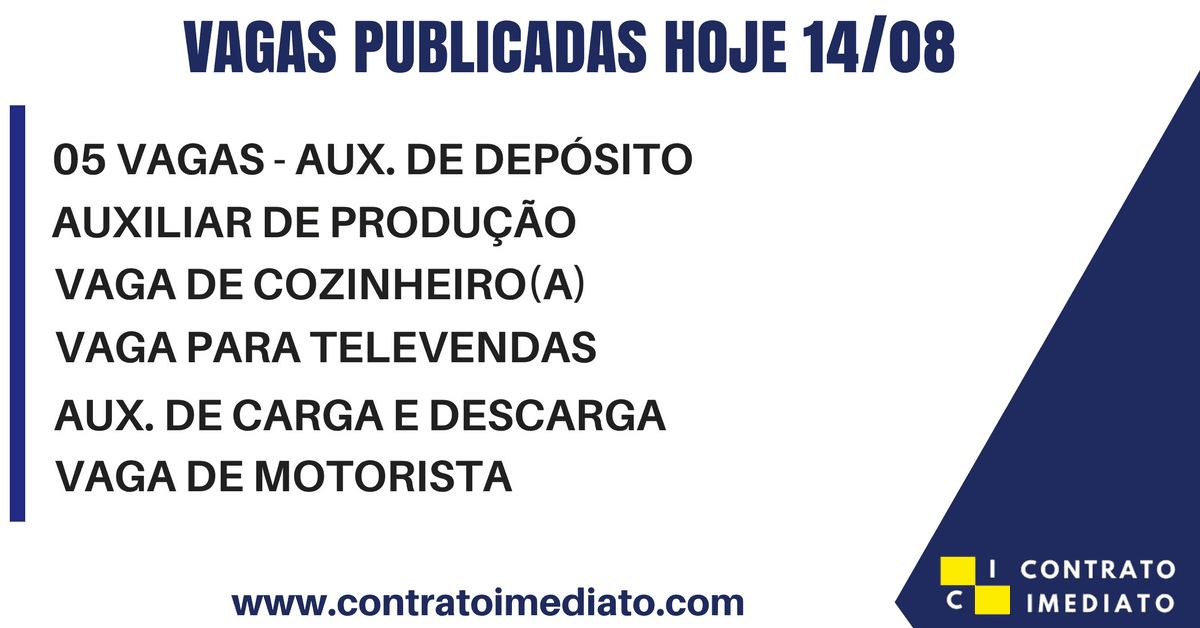 Descrição da vaga: Idade 20 a 35 anos. 2° grau completo; Pró-ativa, ágil e responsável. candidatos com fácil acesso .