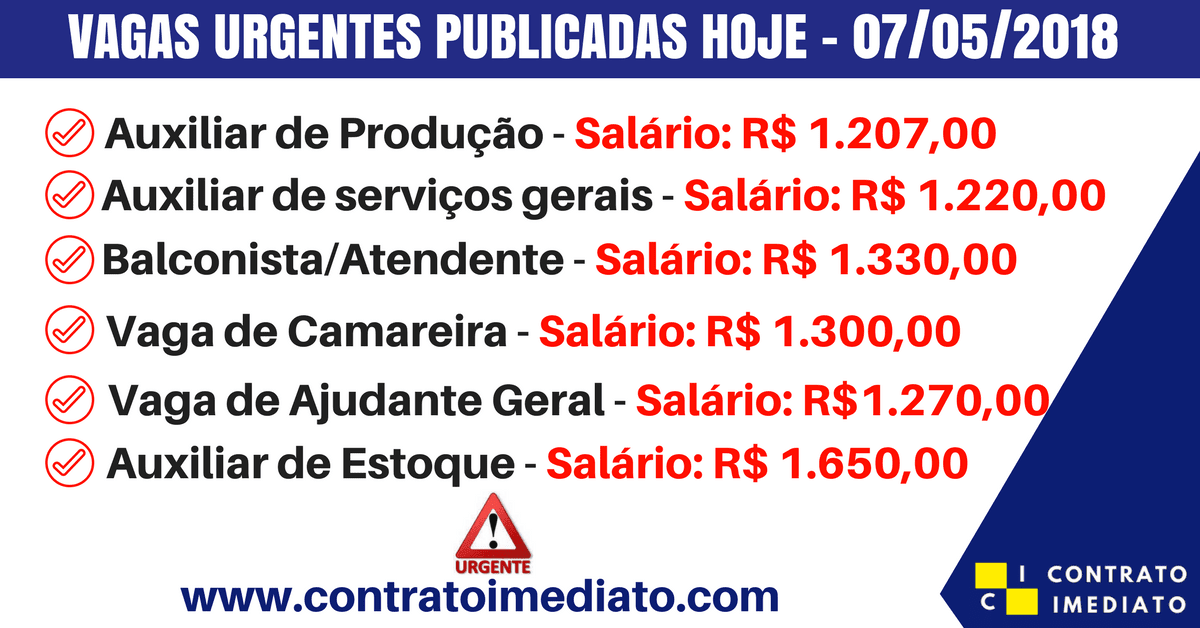 Salário: R$ 1.207,00 + benefícios.